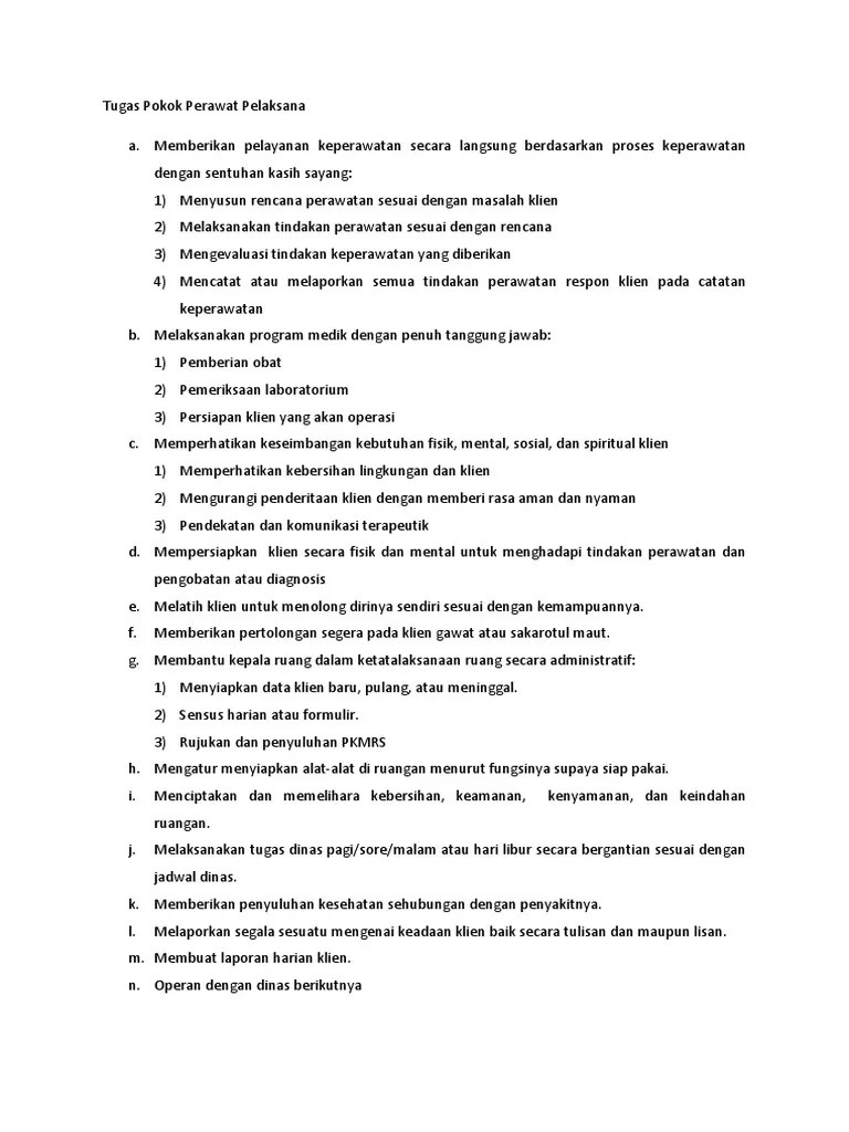 Penilaian berupa laporan pendahuluan tentang peran yang. Jenis pelayanan keperawatan di rumah sakit terdiri. Ruangan, ketua tim dan perawat pelaksana. Perawat pelaksana langsung kontak dengan pasien dalam menyelenggarakan pelayanan asuhan keperawatan. Kinerja perawat yang telah ditetapkan dalam pemberian asuhan keperawatan.